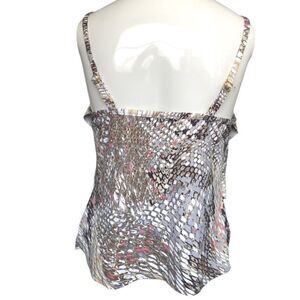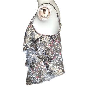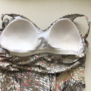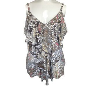 Scale design layered tankini top. Tags missing but measures 16.5 inches lay flat from pit to pit.