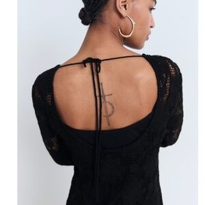 316. MANGO Black Crochet Floral Mini Dress W/Slip $90 EUC Sz 2