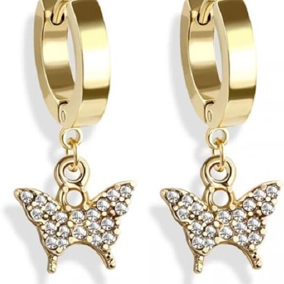 316L Stainless Steel CZ Crystal Butterfly Dangling Huggie Hoop Earrings Pair — Elegant and playful! Perfect for adding a touch of sparkle to everyday or special occasion looks.