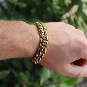 316L Stainless Steel Miami Cuban Link Chain 14K or White REAL Gold Plated Hip