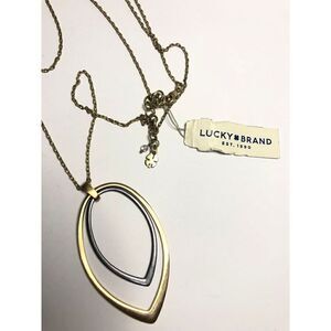 318 Lucky brand goldtone & black teardrop boho pendant necklace 29"-31" new