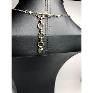 318 Lucky brand goldtone & black teardrop boho pendant necklace 29"-31"
