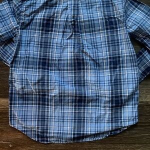 Ralph Lauren button down. Shades of blue and white plaid. Excellent used condition. No flaws. Size 7.