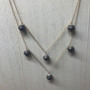 NWT 31 Bits Sandy Strands tiered necklace. 14 karat gold fill chain, black recycled paper beads, extender chain. Handmade by Ugandan refugee artisans.