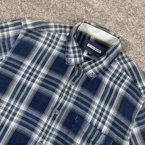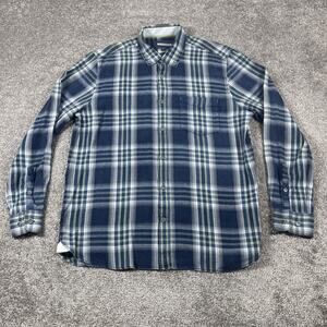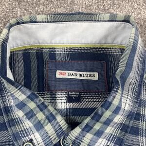 32 Bar Blues Button Down Shirt Mens Large Plaid Cotton Long Sleeve Blue