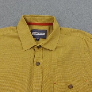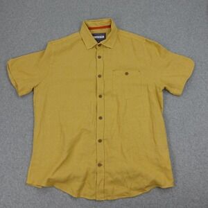 32 Bar Blues Mens L Yellow Short Sleeve Button Up Shirt Pocket Beach Preppy