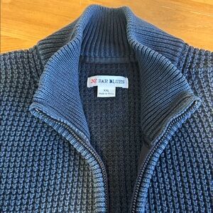 Elevate your wardrobe with this stylish navy zip-up sweater. Perfect for layering and versatile for any occasion. 100% cotton. Worn 1x. Not stretched out. Size XXL. 32 Bar Blues brand. NAVY BLUE color.