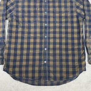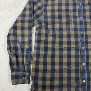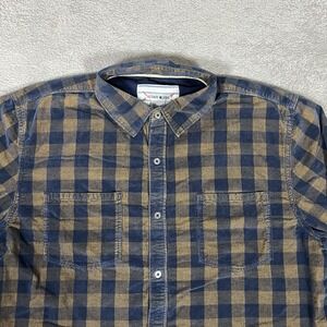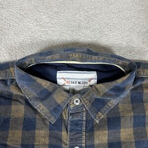 32 Bar Blues Shirt Mens Large Pinwheel Corduroy Button Up Blue Brown Check