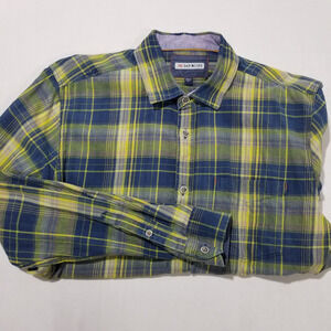 32 Bar Blues Shirt Mens Large Plaid Cotton Dobby Long Sleeve Follow Me Up