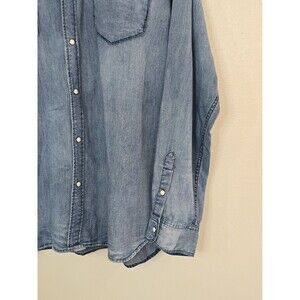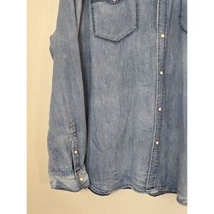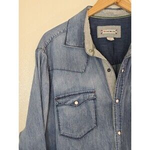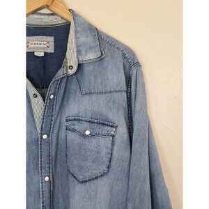 32 Bar Blues Shirt Mens XL Blue Denim Western Pearl Snap Long Sleeve Cowboy