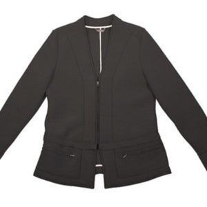 You won’t find a more transitional blazer anywhere, because this is actually 2 jackets in 1, w a zip-off peplum bottom. Made of our custom Merino Wool this blazer is anti-microbial, moisture-wicking &machine washable. The knit material allows the wearer to move freely and comfortably.