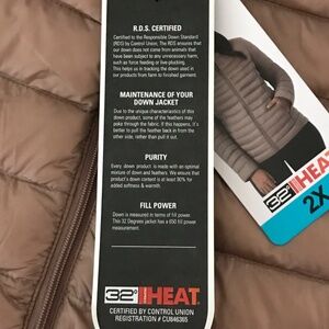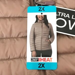 32 DEGREES Down Puffer Jacket Heat Ultra Light Taupe NWT Women's Plus Size 2X