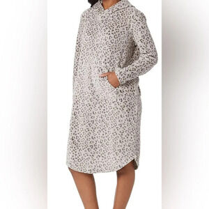 32 DEGREES Heat Women's Hooded Cozy Plush Sleep Lounger S/M Leopard Grey NWT
