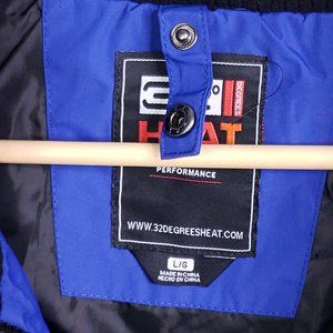 32 Degree Heat Performance Men's L Hydro-Tech Full Zip Rain Shell Jacket Blue