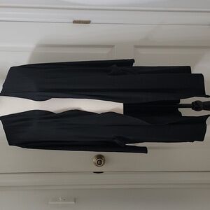 32 Degree Heat Size L/XL Black Open Cardigan / Wrap with Pockets, NEW with Tag. This Soft Comfy Cardigan / Wrap is the perfect piece for lounging on the couch by the fireplace or working at your desk. The lightweight material is quick drying and provides the right amount of stretch to feel comfortable all day. Please refer to measurements in photos to ensure proper fit.
