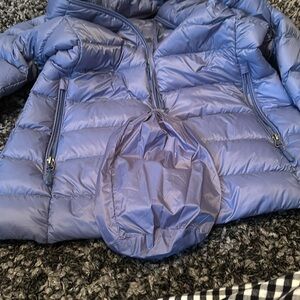 Size small. Very soft, thin but warm. Comes with packable bag. Any questions, please ask.