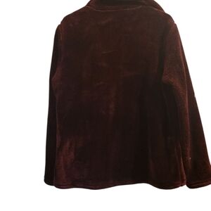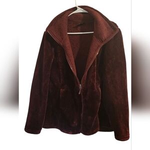 Stay cozy and stylish with this plush maroon jacket. Perfect for chilly days, this jacket offers both warmth and elegance. This is a new item without tags.