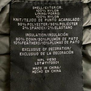STYLE: Long sleeve puffer jacket, front zip , lightweight, packable into bag that's in the pocket. Down fill.
