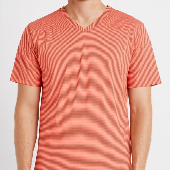 32 Degrees COOL Short Sleeve V-Neck Orange/White Size Medium EUC