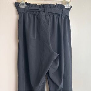 Lightweight black pants with a modern fit. Perfect for many occasions. These are jet black, some photos look gray, but they’re black. Elastic waist, removable belt, pockets, easycare. Excellent pre-loved condition, no flaws, like new.