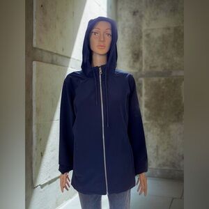 - Features: Zipper and drawstring closure, hood, 2 zippered front pockets, 2 interior pockets