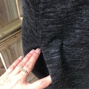 Dark Gray Short Sleeve Relaxed Fit Pullover Dress by 32 Degrees. High Low Hem, Two Front Side Pockets, 4 Way Stretch Fabric.