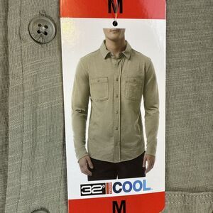 32 Degrees Cool Men's Green Button-Up Shirt Medium Long Sleeve Cotton NWT