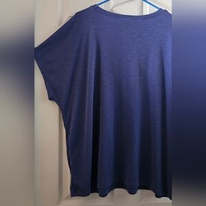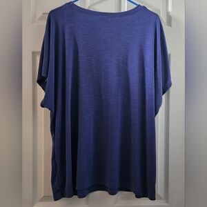 Loose fit, with a mild ribbing texture in pretty violet-purple top. Batwing style, short sleeve athletic top with a crew neckline. Buttery-soft, flowy and non-clinging all-way stretch fabric made from 64% Modal and 36% polyester material. Excellent condition🌻
