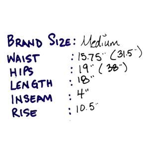 ✔️ Size Medium (Waist: 31.5", Hips: 38", Length: 18", Inseam: 4")