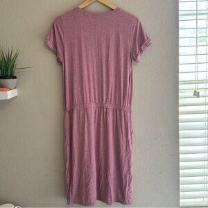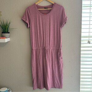 Comfortable pink t-shirt dress with short sleeves. Perfect for casual outings. 32 Degrees Cool Women's Soft Lightweight Lux Dress Medium Color:Heather Scarlet Oak Item Description: