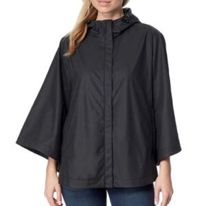 32 Degrees Cool Zip Up Hooded Poncho Rain Jacket with pockets Black size S/M