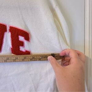 This cozy sweater from 32 Degrees showcases a striking red 'LOVE' design on a soft white knit fabric. The crew neck and long sleeves provide a timeless look, while the plush lettering adds a unique and eye-catching detail. Ideal for adding a touch of warmth and style to your everyday ensemble.