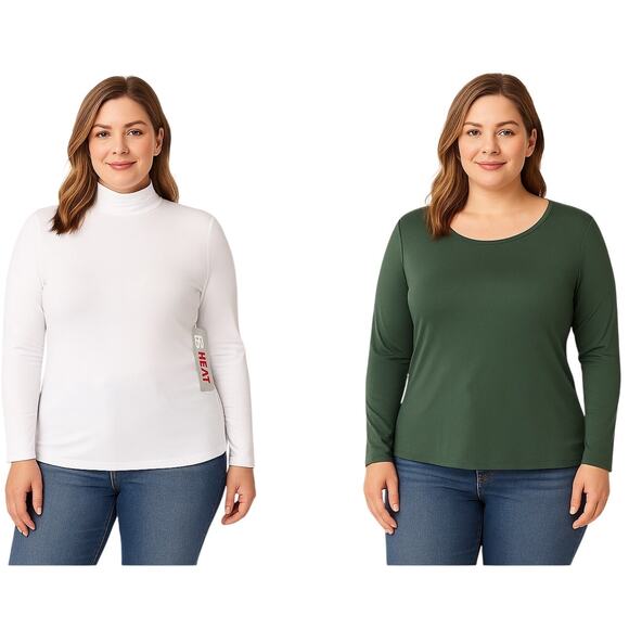 32 Degrees HEAT Long-Sleeve Thermal Tops Bundle – White (NWT) + Green – Size L