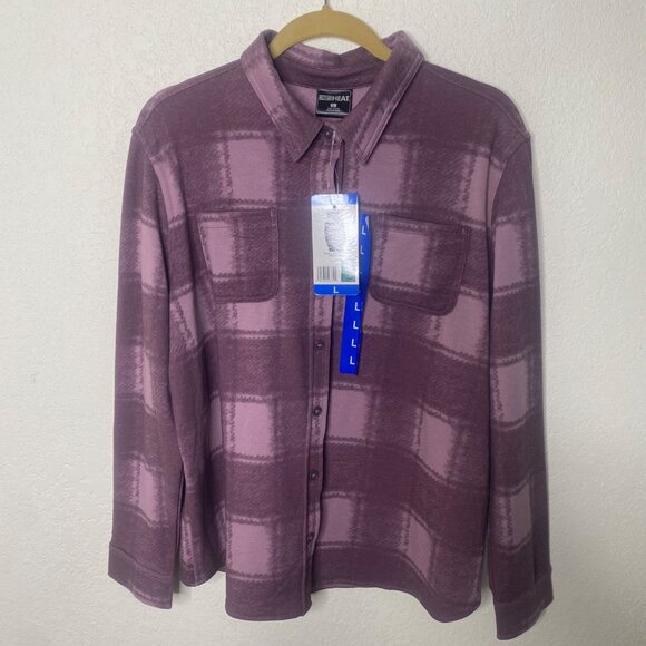 32 Degrees Heat Plaid Flannel Button Up Shirt Womens Size L Pearly Purple Cozy W