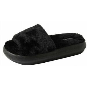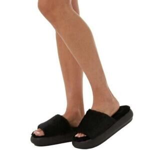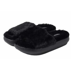 32 Degrees Heat Platform Fur Slide Slippers Indoor Outdoor Black Women's 8 or 10