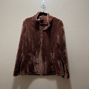 32 Degrees Heat Plush Jacket Red Fleece Zip Up Fuzzy Faux Fur Long Sleeve Sz M