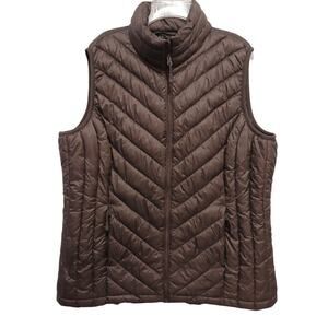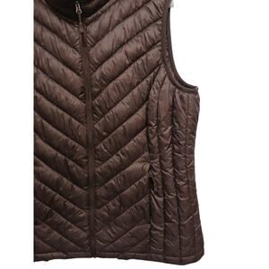 32 Degrees Heat Ultra Light Puffer Vest Sz Small BROWN Chevron Packable Gorpcore Sport Comfort Layer Lagengook Closet staple NEW