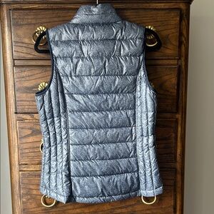 Chic and cozy puffer vest. Ideal for layering. Features a sleek design. Has a slight denim blue design. Two outside zipper pockets and two inside non zipper pockets. Lightweight and package. Like new.