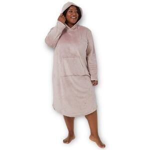32 Degrees, hooded lounger, velour sleep dress, cozy loungewear, lavender pearl, plush hoodie dress, women’s lounge, soft nightgown