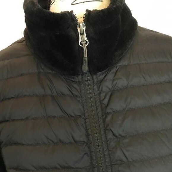 32 Degrees quilted and plush fleece jacket. Has full zipper front and zippered pockets. COLOR: Black SIZE: Women's small Measurement's: All measurements are approximate to my best ability. Length from shoulder seam to bottom front hem: 23 1/2" Chest measured at armpits: 37" Sleeves from armpit to hem: 18" Materials: Front body/back yoke 100% Nylon, Sleeves/collar/back body 100% polyester Faux Fur, Lining 100% nylon, Insulation 90% down and 10% feather Washing instructions: Fasten all closures, Machine wash cold gentle cycle inside out with like colors. Tumble dry low. CONDITION: It's in excellent pre-owned condition. No stains or tears. I try to describe all items to the best of my ability, including any defects. Please ask any questions prior to purchasing. Please note that product pictures are taken under studio conditions and colors may appear different in person than on your screen. All items are from a smoke free and pet free home. Items are shipped Monday through Friday. Keywords: running, sports, active, athletics, run, casual, walking, quarter 1/4 zip, full zip, business W1*