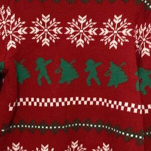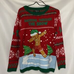 32 Degrees Red Holiday Sweater Size XL Young MENS / UNISEX with Dabbing. Dancing Gingerbread and snowflake design LENGTH MEASURES APPROX 28” from shoulder to hem sleeves measure approx 25” Chest measures approx 21” from side to side GOOD CLEAN CONDITION