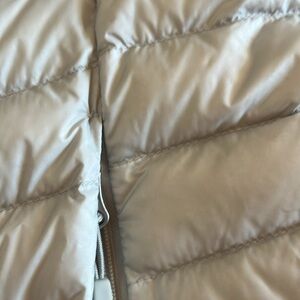 Stay warm and stylish with this light gray puffer jacket. Perfect for chilly days, it offers comfort and a sleek look.