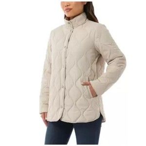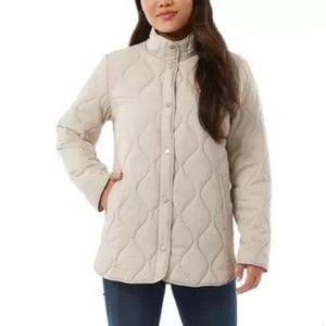 32 Degrees Women's Quilted Mockneck Fully Lined Snap Jacket Coat Beige, Size XXL