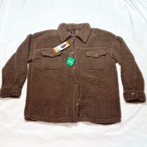 Introducing a 32° Heat cardigan sweater jacket in women’s XL/XXL, in brown color. This button-up style features a soft sherpa lining for added warmth and comfort. Made by 32 Degrees Heat, this piece is designed to combine lightweight insulation with cozy layering. Constructed from a polyester blend and brand new.