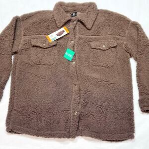 32° Heat Cardigan Sweater Button Up Jacket Sherpa Women XL XXL Brown New