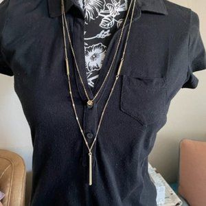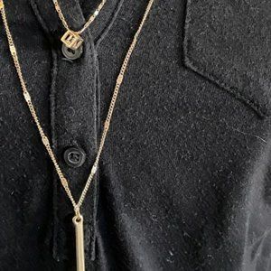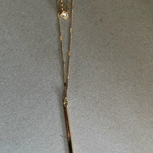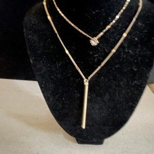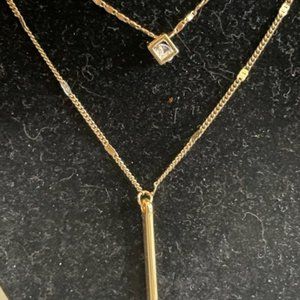 32" Liz Clairborne Gold Fancy Double Chain with a Gold Bar Lariat $ Caged Box CZ