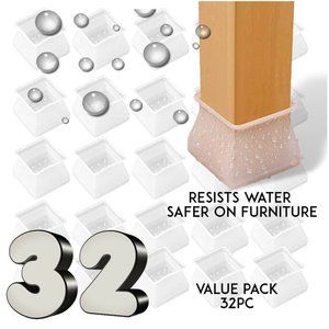 32 PCS VALUE PK SILICONE CHAIR LEG CAPS FEET COVER PADS NO SKID FLOOR PROTECTORS