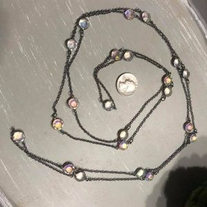 Silver needs polishing to bring back to life. When fully open chain is 32" long.