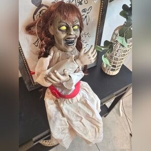 32" Tall Grim Girl Doll Halloween Prop Motion-Activated Spooky Creepy Decoration