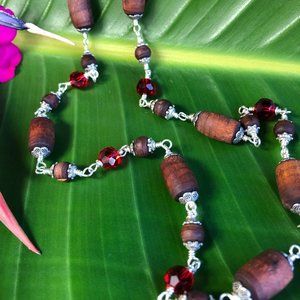 32" berry Tulasi with red glass crystal beads